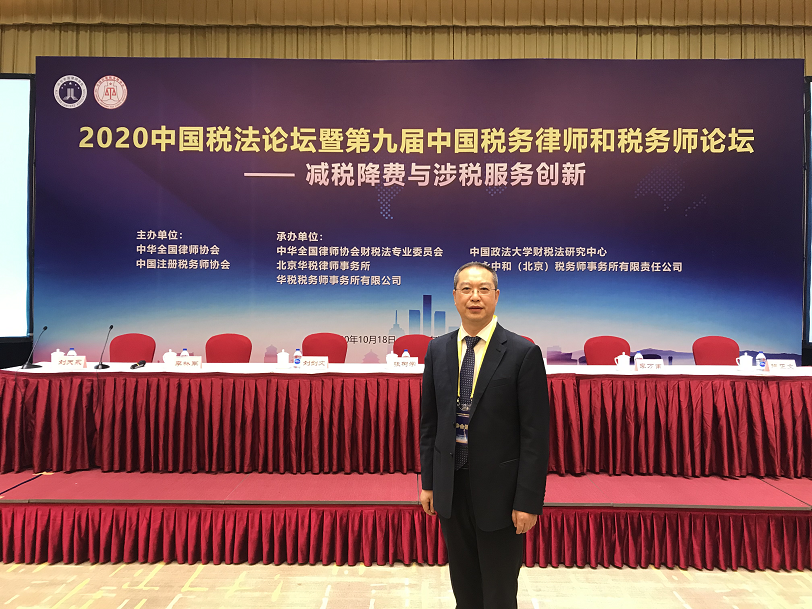 2020年10月18日,由中華全國(guó)律師協(xié)會(huì)、中國(guó)注冊(cè)稅務(wù)師協(xié)會(huì)共同主辦,中華全國(guó)律師協(xié)會(huì)財(cái)稅法專(zhuān)業(yè)委員會(huì)、中國(guó)政法大學(xué)財(cái)稅法研究中心、北京華稅律師事務(wù)所、華稅稅務(wù)師事務(wù)所、信永中和(北京)稅務(wù)師事務(wù)所聯(lián)合承辦的“2020中國(guó)稅法論壇暨第九屆中國(guó)稅務(wù)律師和稅務(wù)師論壇”在北京友誼賓館聚賢廳隆重舉行。