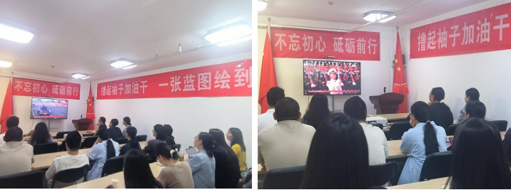 活動開始,全體黨員、積極分子、群眾的目光齊齊投向了大屏幕,《松花江上》《在太行山上》《保衛(wèi)黃河》《沒有共產(chǎn)黨就沒有新中國》,一首首誕生于抗戰(zhàn)烽火中的經(jīng)典歌曲連唱,讓大家重溫中華民族那段艱苦卓絕、氣壯山河的崢嶸歲月。80響禮炮震徹云霄,國旗護(hù)衛(wèi)隊(duì)護(hù)送五星紅旗,從人民英雄紀(jì)念碑前一路行進(jìn)。官兵們整齊劃一的腳步叩擊大地,如同歷史從遠(yuǎn)方傳來,與你我澎湃的心跳共振。國歌奏響,國旗冉冉升起。80年前的苦難與堅(jiān)守,中華民族的奮斗與榮光,凝聚成那一抹飛揚(yáng)的紅,在風(fēng)中盡情綻放。13個徒步方隊(duì)在黨旗、國旗、軍旗的引領(lǐng)下,鏗鏘正步踏過天安門廣場,每一幀盡顯大國威儀。戰(zhàn)旗獵獵,鐵流滾滾。80面抗戰(zhàn)英模部隊(duì)榮譽(yù)旗幟組成的戰(zhàn)旗方隊(duì),承載著歷史榮光浩蕩而來。震撼的場景、昂揚(yáng)的氣勢在黨員們心間久久回蕩,心中更是油然而生一份無與倫比的國家榮耀與民族自豪??吹接^禮席上,抗戰(zhàn)老兵顫抖著敬禮。這是跨越時空的家國接力,是血脈與信念的賡續(xù),也是今日向歷史獻(xiàn)上的崇高致敬!