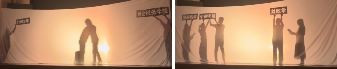 節(jié)目開篇便以精妙的光影設計抓住全場目光。暖黃燈光緩緩鋪展,幕布上的影子清晰勾勒出教室場景。在青澀的少年時期,稅收于他是歷史長河中的模糊印記,是煙火人間里的細碎蹤跡,一份好奇悄然扎根心底,成為探索未知的火種,照亮了逐夢的方向。